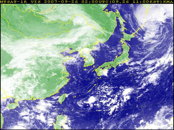 Количество снимков в сутки со спутников NOAA не всегда бывает достаточным для анализа и прогноза синоптических процессов. В этом вопросе на помощь синоптику приходят снимки с геостационарного ИЗС MTSAT – IR, которые позволяют непрерывно следить за эволюцией облачных систем в циклонах и тайфунах, отслеживать возникновение и развитие кучево-дождевой облачности и связанных с нею шквалов и ливневых осадков, определять скорость и направление перемещения крупномасштабных облачных образований по последовательности изображений облачного покрова. Орбита геостационарного спутника создает уникальную возможность непрерывного наблюдения (через 60 мин.) за процессами, происходящими на больших территориях земного шара, что значительно дополняет имеющуюся информацию для анализа синоптических процессов и составления прогнозов явлений.