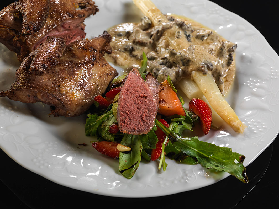 Грудинка голубя считается деликатесом не только среди охотников, но и среди гурманов, поэтому часто востребована в местной кухне. Нежное мясо напоминает мини-стейки или медальоны. Кожа вытягивается из груди в сторону, а затем затачивается острым не слишком большим ножом вдоль грудинки и готовится.