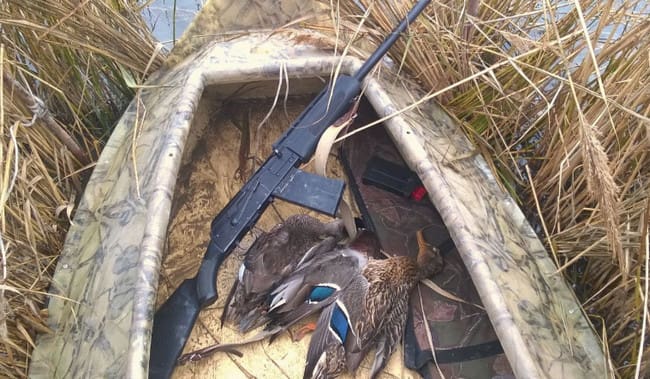 Если найти подходящего места на берегу или мелководье не получается, то можно использовать лодку. Только ее необходимо тщательно замаскировать в камышах. Потому что утки – очень пугливые птицы. Малейшего несоответствия с природой достаточно, чтобы вся стая изменила направление.