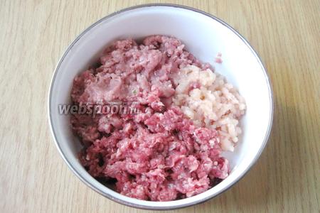 Очень тщательно перемешиваем все ингредиенты фарша. Если фарш не очень сочный на ваш взгляд, то можно добавить немного кипячёной воды, молока или мясного бульона.