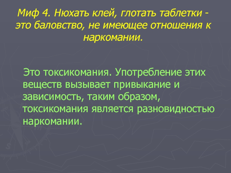 Миф 4. Нюхать клей, глотать таблетки - это баловство, не имеющее отношения к наркомании.