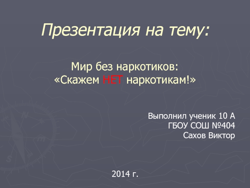 Презентация на тему: Мир без наркотиков: «Скажем НЕТ наркотикам!»