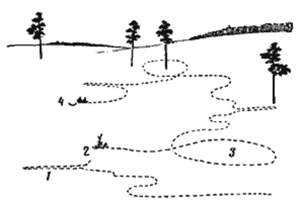 Прежде чем приступить к поиску места древки «косого», рекомендуется обозначить возможные места, где его можно найти. Для этого, отмечаем на карте такие участки и стараемся подойти к ним с ветреной стороны. Проходя каждые 40-50 метров, останавливайтесь и делайте несколько громких шагов. Если заяц рядом, и вы застигли его врасплох, он обязательно поднимется.