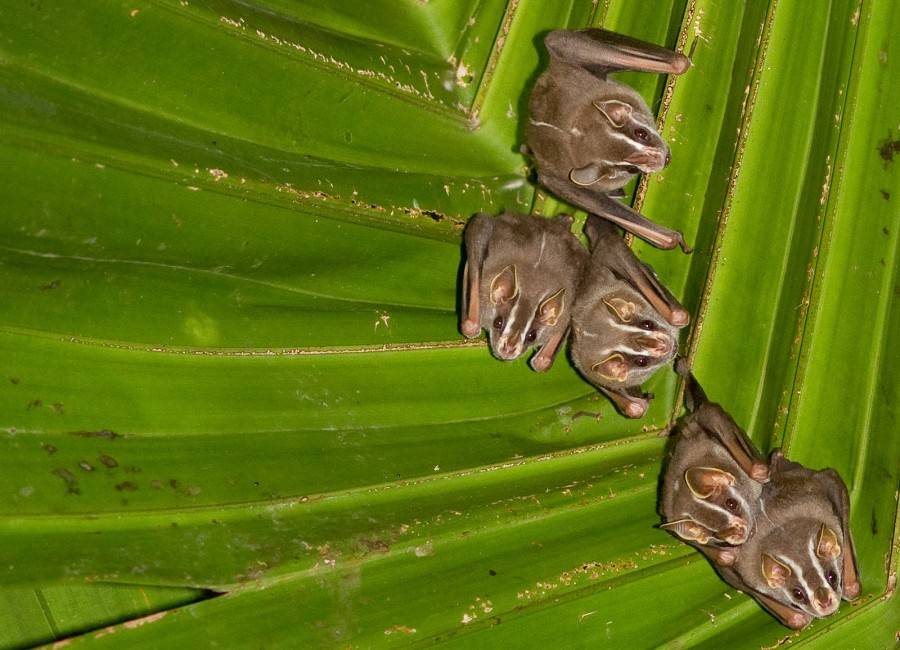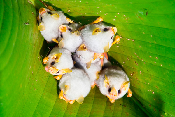 Есть летучие мыши белого цвета с желтыми ушками и носиком – это гондурасские белые летучие мыши (лат. Ectophylla alba).