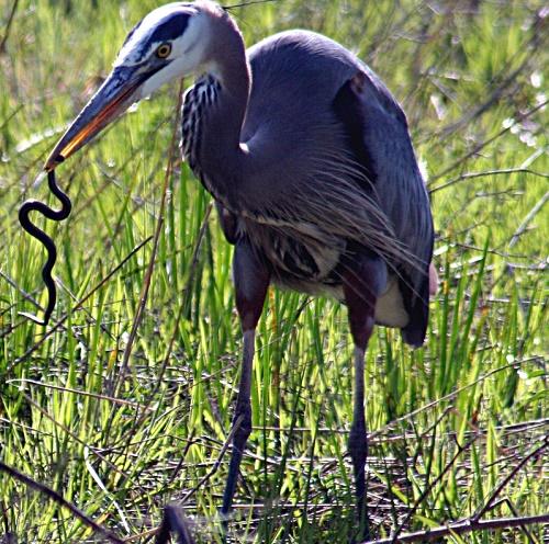 Рацион змееядных состоит в основном из змей. Такие птицы обладают быстрыми рефлексами и острыми когтями для ловли змей. К змееядным птицам относится: птица-секретарь, чёрный змееяд, цапля и представители семейства вороновых.