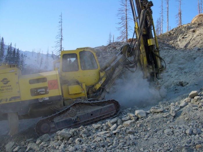 Как только территория определенной площади оказывается оголенной, в дело вступают буровые машины. Их целью является создание в горной породе скважин с диаметром в 25 см. Глубина одной скважины может достигать 20 м. Бурятся они в одну или несколько линий вдоль уступа. Если выбран второй способ, то скважины располагаются со смещением, при котором одни располагаются между другими. Расстояние между отдельными рядами в минимальном значении имеет четыре метра, в максимальном - семь. Во все отверстия происходит закладка взрывчатого вещества. Все заряды соединяются между собой запалами, которые должны сработать одновременно. Перед активацией опасная зона зачищается от техники и людей. В процессе взрыва происходит дробление породы на габаритные и негабаритные части материала. Последние не транспортируются с места, а раскалываются повторно взрывчаткой. Для этих целей используются шпуровые или накладные заряды.