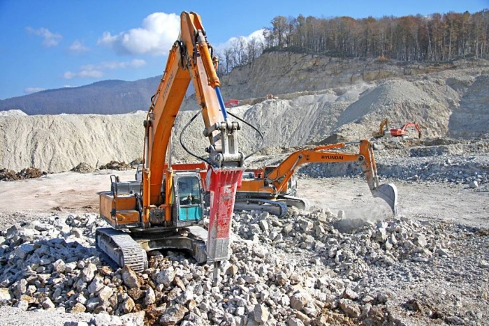 После завершения подрывных работ на участок стекаются экскаваторы и самосвалы. После погрузки материала выполняется доставка на ближайший дробильно-сортировочный участок. Основным оборудованием на нем являются грохоты и дробильные аппараты. За ними следуют конвейеры и транспортеры. В процессе дробления материала используется несколько разновидностей агрегатов. Основу составляют гирационныи и вибрационные. Но для крупногабаритной основы применяются колосниковые установки. Во время дробления щебня на более мелкие фракции применяются такие виды установок: