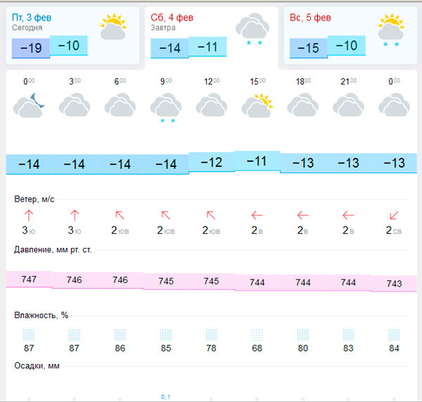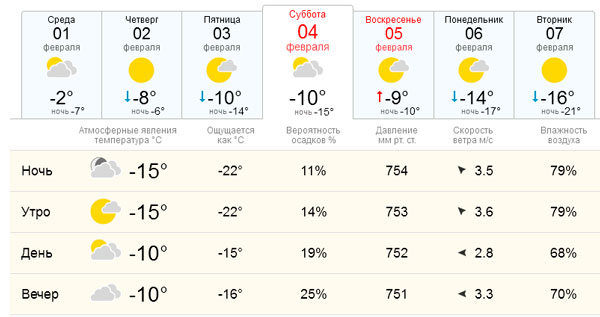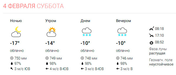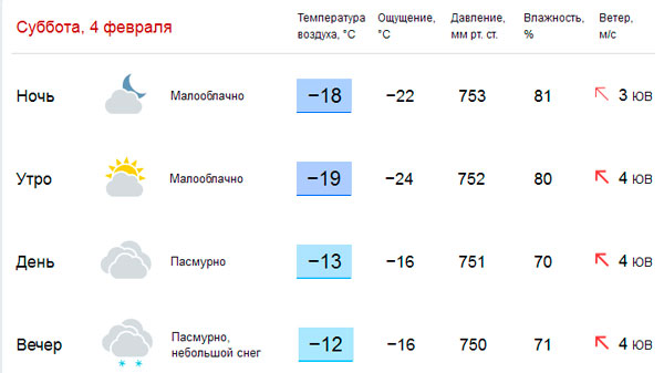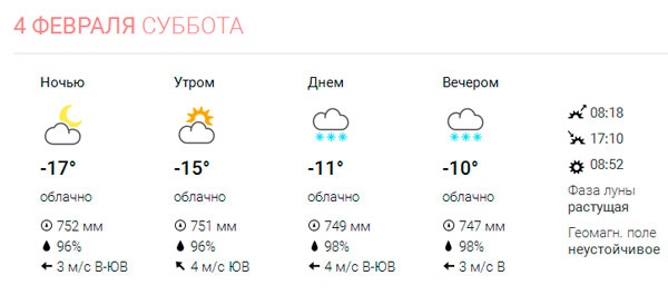 А теперь рассмотрим более подробный детальный прогноз погоды на 4 февраля.