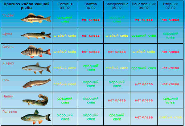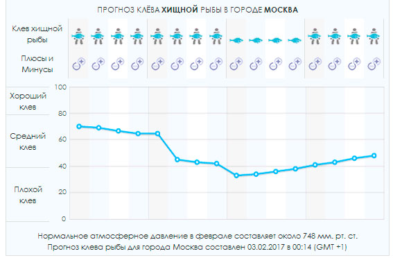 Этот сайт по Яндексу самый популярный у рыбаков. Дает прогноз клёва рыбы в городе Москва, Московская область. . учитывает температуру воды и толщину льда. По таким критериям клев практически неизменный, ведь температура воды зимой всегда 1-3оС и лишь на глубине может быть 4-5оС. Ну а лед нарастает совсем медленно. Но хоть какие-то критерии даны.