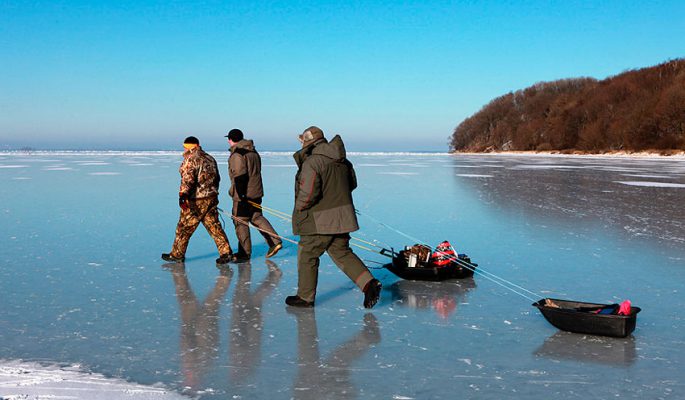 Зимняя рыбалка достаточна скудна. В этот период здесь редко можно встретить толпы рыбаков. Встречаются лишь единичные любители этой мужской забавы. Дело в том, что в зимний период в Калининградской области наблюдается достаточно переменчивый климат, и из трех месяцев всего лишь один может быть пригодным для рыбалки.