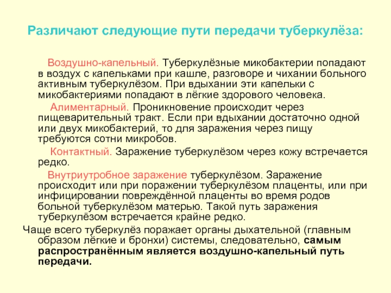 Различают следующие пути передачи туберкулёза: