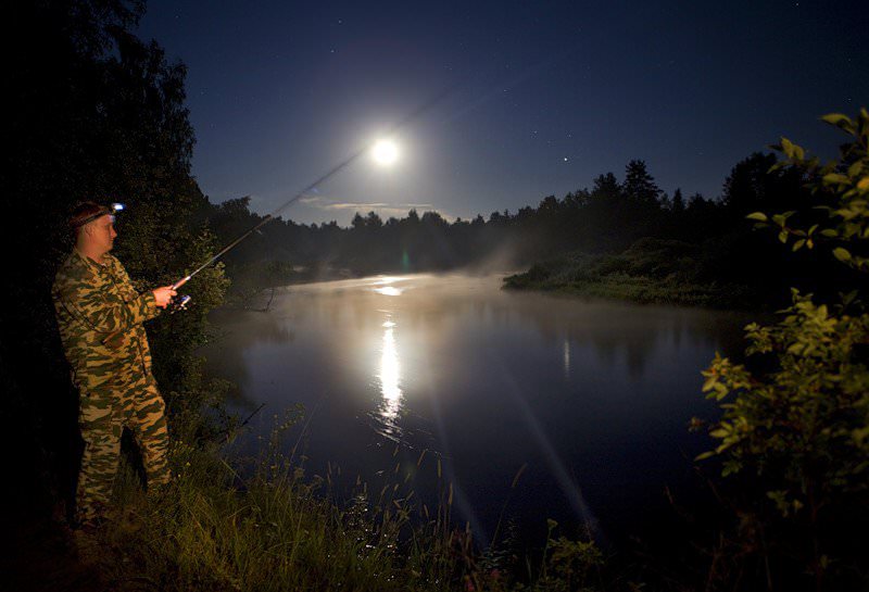 Лучше всего оправляться на рыбалку или на заре или ночью, когда температура чуть меньше чем днем.