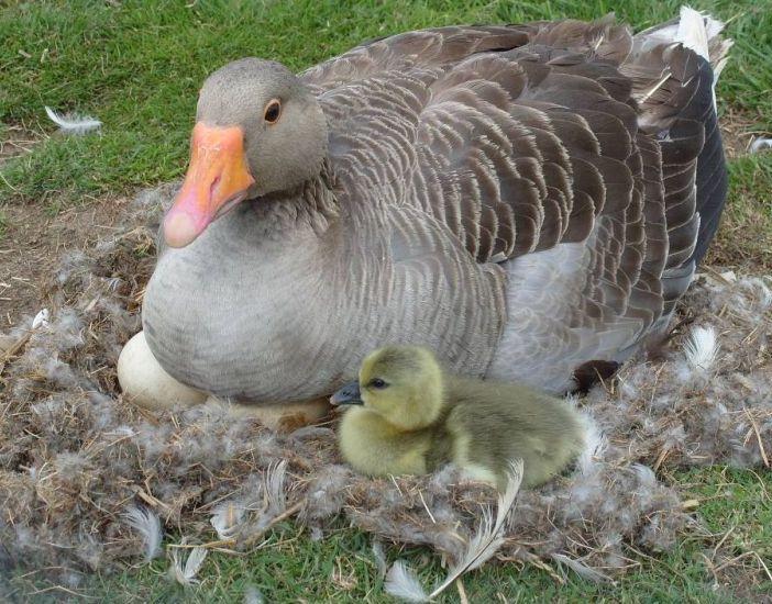 Обычно наседки высиживают гусят около месяца. При условии, что вся кладка одинаково прогревается, потомство вылупится почти одновременно. Гнездо гусыни-наседки необходимо отгородить от других обитателей птичника.