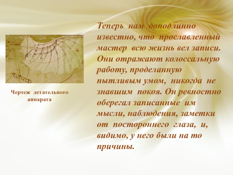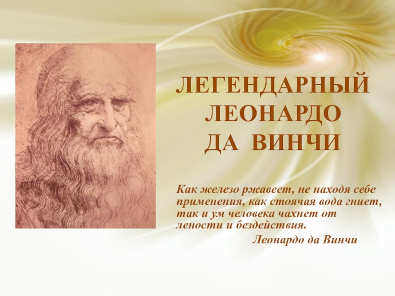 Презентация на тему Презентация на тему Легендарный Леонардо да Винчи, предмет презентации: Физика. Этот материал содержит 10 слайдов. Красочные слайды и илюстрации помогут Вам заинтересовать свою аудиторию. Для просмотра воспользуйтесь проигрывателем, если материал оказался полезным для Вас - поделитесь им с друзьями с помощью социальных кнопок и добавьте наш сайт презентаций ThePresentation.ru в закладки!