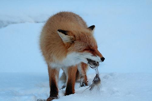 Добычей лисицы может стать как маленькая птичка, так и крупная, к примеру, глухарь или Основной помощник хищницы в поисках пищи - это ее чуткий нос, который на достаточно больших расстояниях чует запах грызуна или другой добычи.