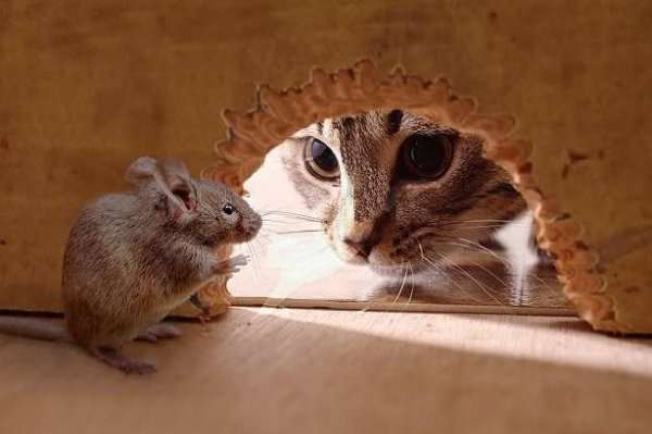 добейтесь устойчивых условных рефлексов кота на мышь. Помните, что основными