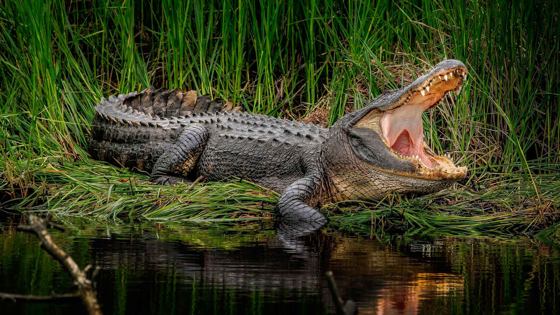 Миссисипский аллигатор (Alligator mississippiensis) селится в непроходимых болотах.