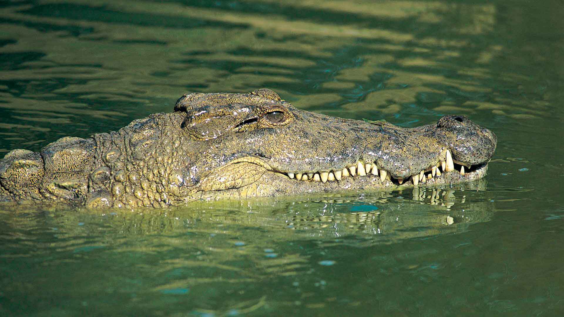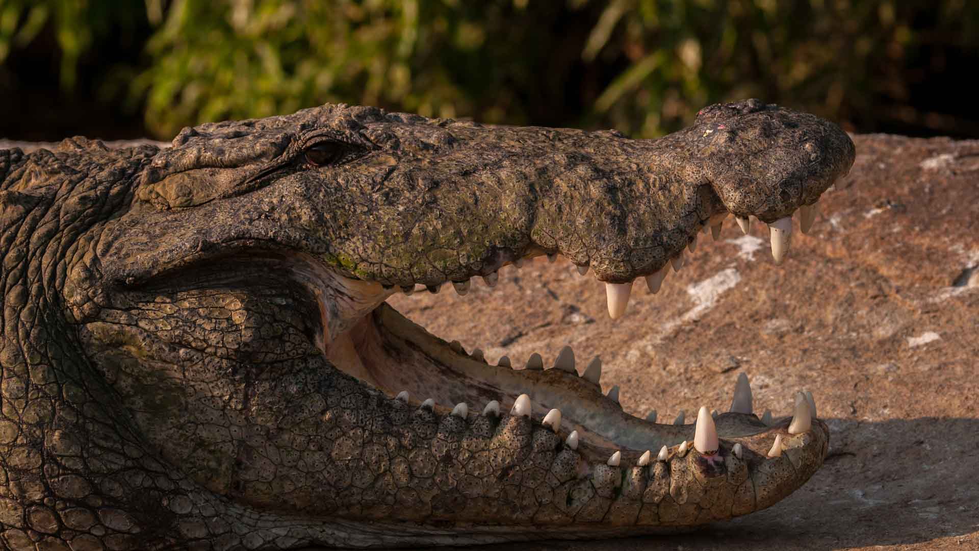 Челюсть нильского крокодила вмещает 65 зубов и является одной из сильнейших на планете. Хищник без труда может удерживать крупных животных и раздробить кость.