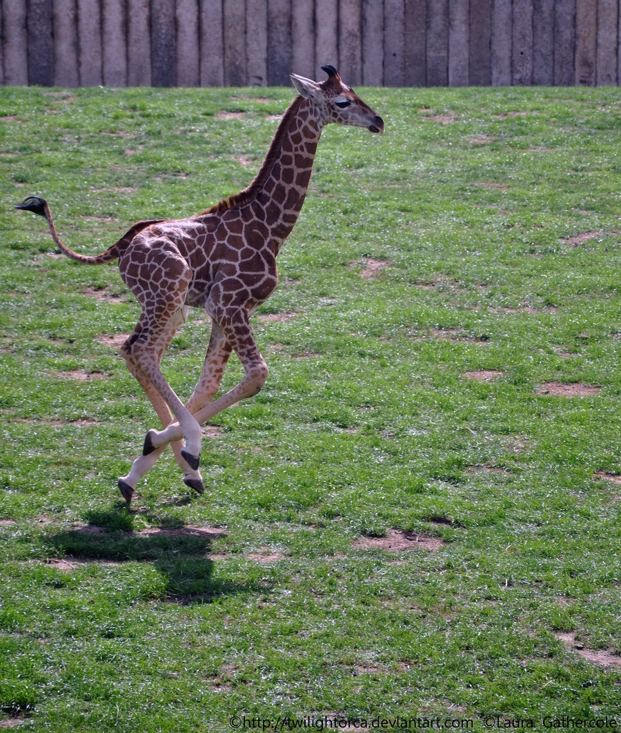 Может потому, что передние ноги жирафа длиннее задних, жираф движется иноходью - то есть поочередно выносит вперед то обе правые ноги, то обе левые. Поэтому бег жирафа выглядит очень неуклюже: задние и передние ноги при этом перекрещиваются, однако скорость достигает 50 км/ч! Во время галопа шея и голова жирафа сильно раскачиваются, выписывая как бы восьмерку, а хвост либо мотается из стороны в сторону, либо высоко задран и закручен над спиной.