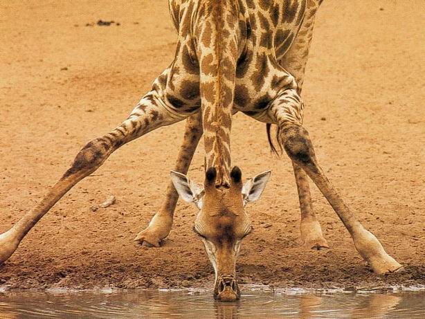 У жирафа очень длинные и тонкие ноги. Однако это не мешает ему быстро бегать и даже прыгать в высоту на полтора метра. Только вот водоемы жираф обходит стороной: они ему пока еще не покорились.