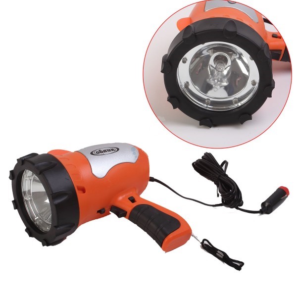 Ручной автомобильный прожектор Облик 8302 . Мощная 35 Вт поисковая фара теплого желтого света хороша как для рыбалки на острогу , так и для охоты на зайца . Питание 12 вольт позволяет подобрать аккумулятор такой мощности, чтобы хватило на всю ночь промысла .