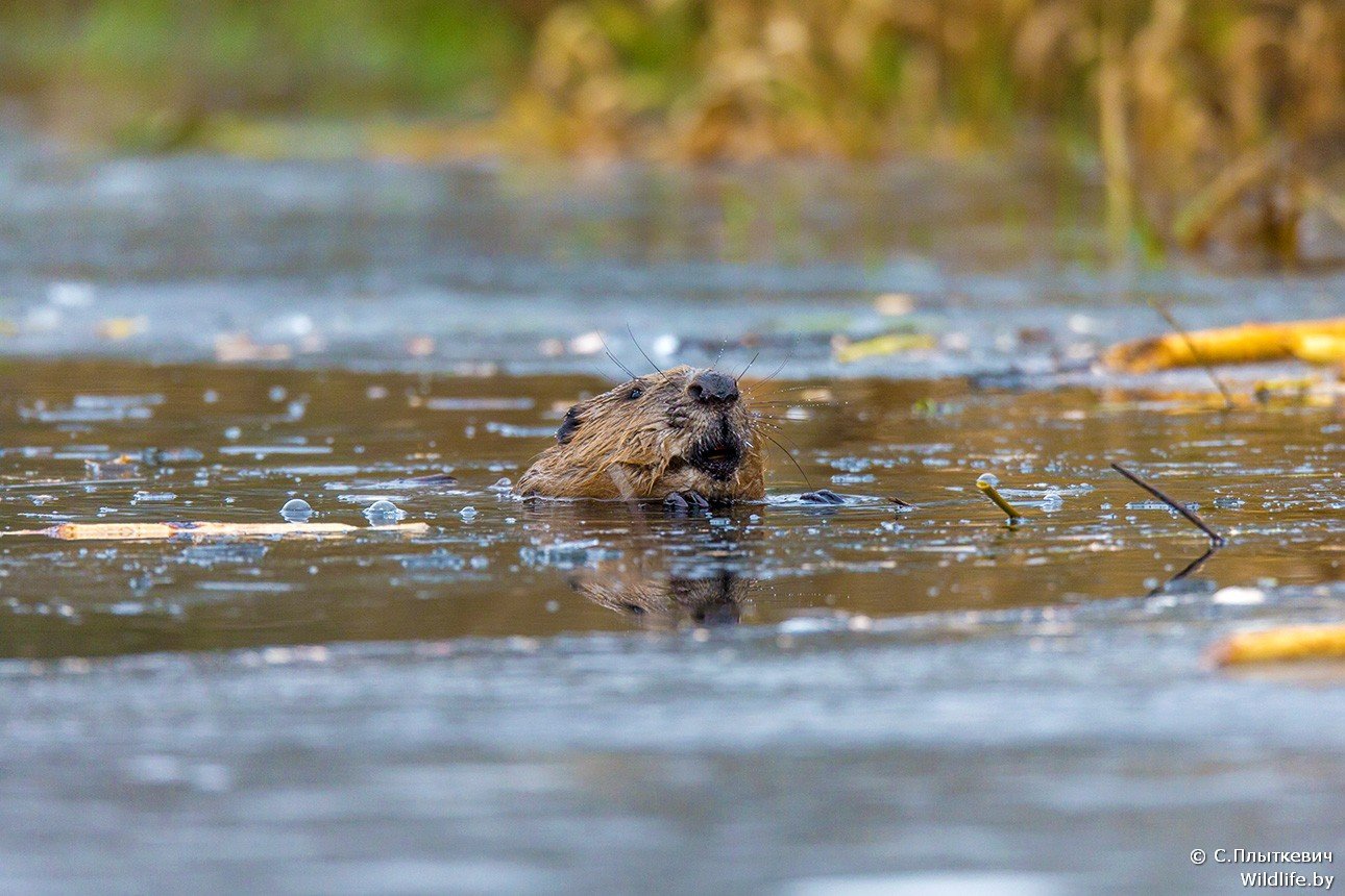 Когда бобры плывут, то на поверхности воды видна только голова и маленькая часть туловища, поэтому попасть в него не так просто, поскольку мишень небольшая.