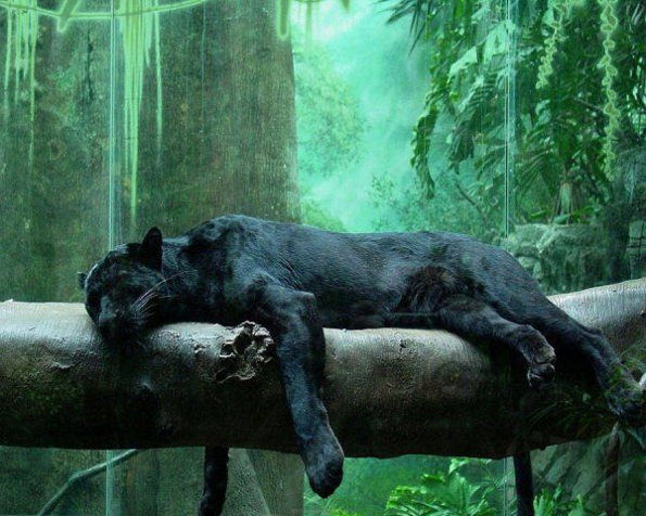 Леопарды, к которым относится пантера, любят отдыхать на деревьях, там они даже спят. Они растягиваются на ветках и свешивают небрежно лапы вниз. Пантеры могут запрыгивать на деревья высотой до 5,5 метров , никто из хищников больше не может похвастаться такой прыгучестью.
