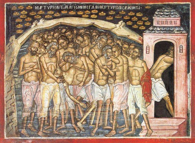 22 марта Русская православная церковь почитает память 40 мучеников Севастийских. В 320 году нашей эры 40 воинов-христиан из древнего турецкого города Севастия бросили вызов военачальнику-язычнику, отказавшись приносить жертву идолам, объяснив свой поступок тем, что поклоняются лишь истинному Богу, а не каменным истуканам. Не помогли ни уговоры, ни угрозы. В итоге воинов схватили, заключили в тюрьму, хотели побить камнями, но каменные глыбы чудом пролетали мимо. Тогда отважных воинов заставили погрузиться в ледяное Севастийское озеро, а рядом натопили баню, куда можно было войти и погреться, только отрекшись от Христа.