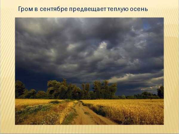 Гром в сентябре предвещает теплую осень.