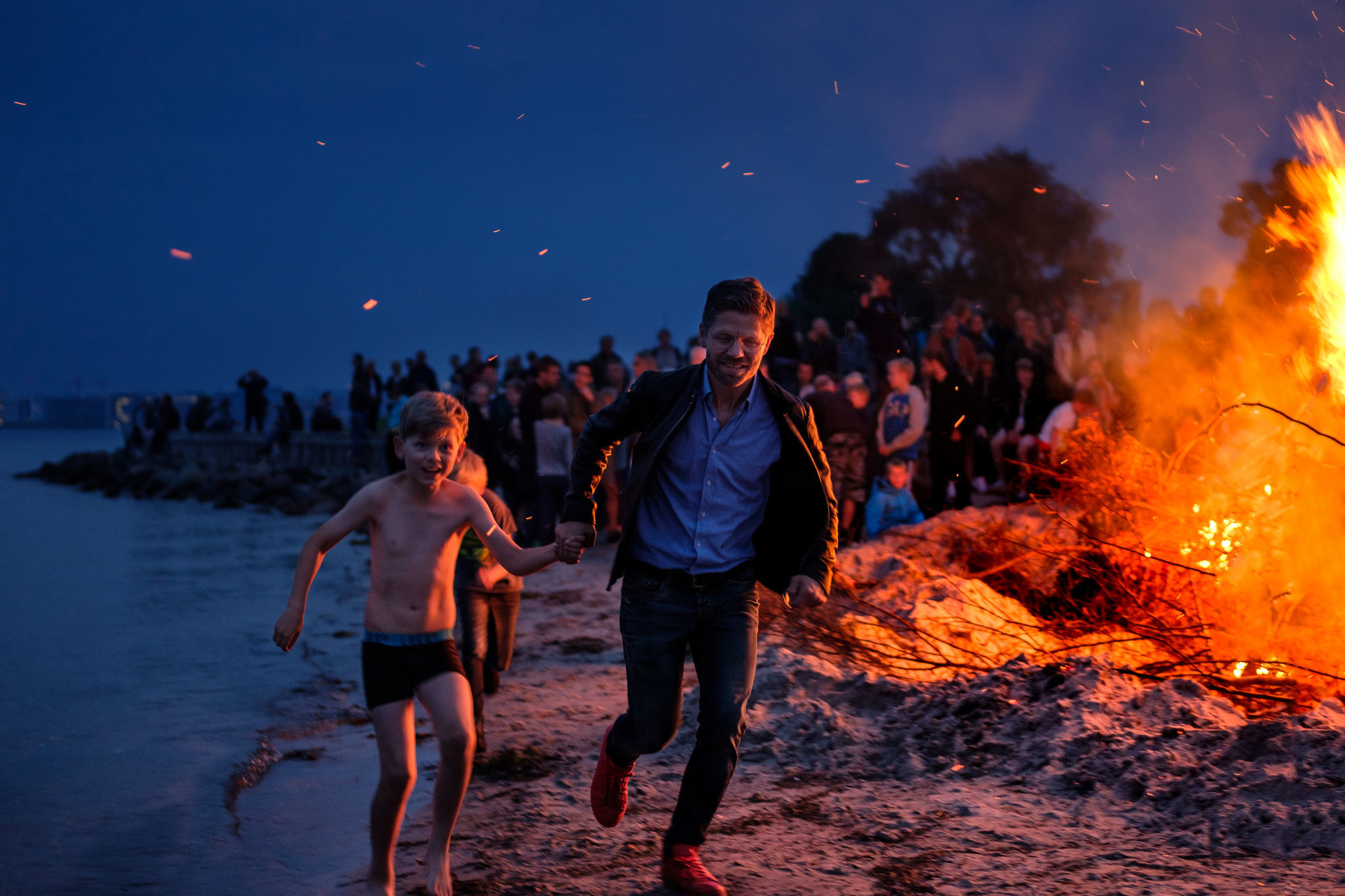 Огонь, как и вода, по народным поверьям, обладал на Ивана Купалу магической и очищающей силой. Поэтому на берегах рек, озер и водоемов разводили большие костры, которые защищали людей от всякой нечисти. Молодежь водила вокруг костров хороводы и плясала, а также прыгала через огонь. По приметам, счастливым становился тот, кто перепрыгивал через костер, не задев пламя.