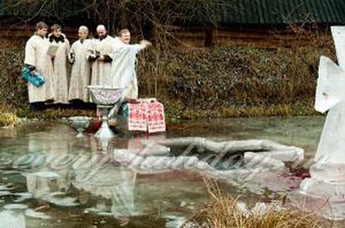 В давние времена, накануне крещения во льду на реке прорубали большой крест и ставили его вертикально рядом с лункой. Крест изо льда украшали еловыми ветками или обливали свекольным квасом, от этого он становился красным.