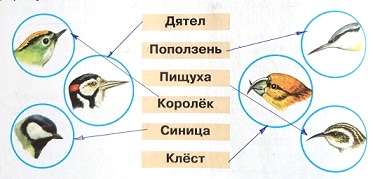 1. Узнайте птиц по клювам. Соедините линиями рисунки и названия.