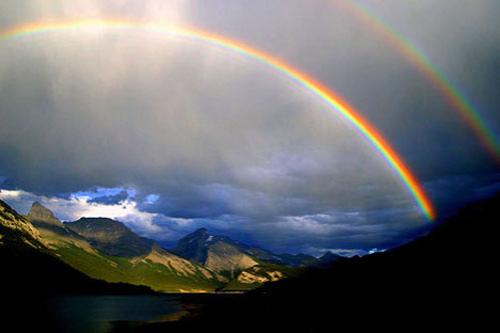 Первая радуга, внутренняя, всегда ярче второй, внешней, а цвета дуг на второй радуги расположены в зеркальном отражении и менее яркие. Небо между радугами всегда более тёмное, чем другие участки неба. Участок неба между двумя радугами называется полосой Александра. Увидеть двойную радугу - хорошая примета-это к удаче, к исполнению желаний. Так что если вам посчастливилось увидеть двойную радугу, поспешите загадать желание и оно обязательно исполнится.