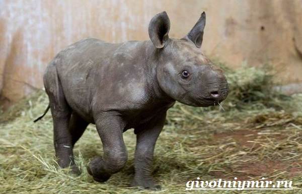 При появлении на свет у маленького носорога на голове хорошо выражена шишка – это будущее оружие носорога – рог, которым он впоследствии сможет защитить себя и свое потомство. В дикой природе носороги живут 30 лет, но известны случаи, когда долгожители переваливали порог полувека.