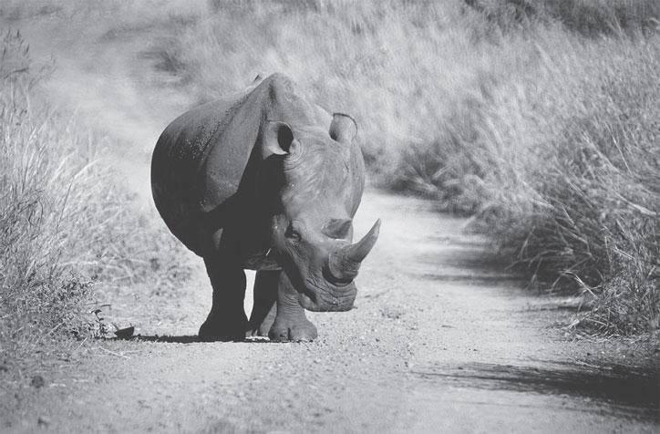 Носорог придерживается простой тактики: если что-либо шевелящееся оказывается на его пути, он опрокидывает "это" всей тяжестью своей двухтонной туши и растаптывает в фарш своими тумбообразными ногами. Крупное животное носорог (например, африканский черный) безжалостно распарывает своим длинным и острым рогом.