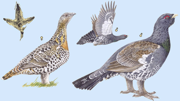 Очень крупная птица, самцы крупнее самок. Окраска самцов серовато-черная, крылья буровато-коричневые, брюшко черное с белыми пятнами. Хвост относительно длинный, закругленный, черный с белым рисунком. Клюв массивный, светлый. Самки значительно мельче, буровато-рыжие с темным струйчатым рису-нокм (рябью). Обитатель хвойных лесов, преимущественно сосновых. Оседлая птица, пар не образует. Весной самцы собираются на поросших сосной моховых болотах или по борам, где токуют, издавая негромкие, трудно передаваемые словами звуки. Зимой нередко сбивается в небольшие стаи. От тетерева отличается значительно более крупными размерами.