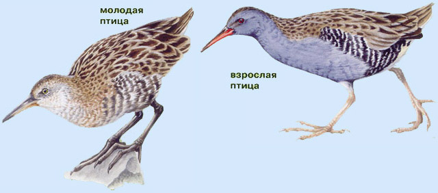 Небольшая птица размером с коростеля, несколько крупнее погоныша. Половой диморфизм в окраске оперения не выражен. Вся спинная сторона тела олив-ково-бурая с темно-бурыми широкими стержневыми полосами. Бока головы, шея, зоб и передняя часть брюха серовато-стального цвета. По бокам тела и на средней части брюха чередуются поперечные широкие черные и узкие белые или желтоватые полосы. Подхвостье белое. Главное отличие от погонышей и коростеля — длинный, слегка изогнутый клюв, надклювье и кончик которого черно-бурые, а подклговье красное. Крики очень разнообразны, наиболее характерный напоминает протяжный визг поросенка. Гнездится на различных водоемах с зарослями водной растительности.