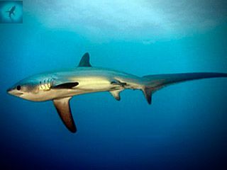 Лисья акула имеет очень длинную верхнюю долю хвостового плавника, достигающую длины всего туловища.