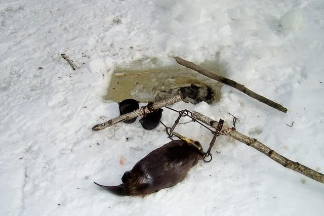 После всех необходимых приготовлений можно устанавливать ловушку. Площадку с капканом ставят на середину проруби, затем на расстоянии около 50 см опускается веник. После этого остается только ждать зверя.