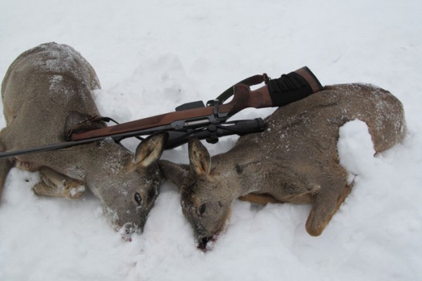 Когда осуществляется слежка сразу за двумя косулями, убив одну, можно сразу направляться по следу второй, так как она некоторое время будет ждать появления сородича.