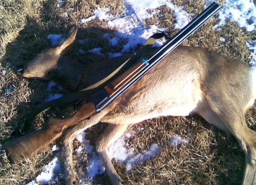 Согласно правилам охоты, по косуле нельзя стрелять дробью или картечью диаметром меньше 5 мм во избежание подранков.