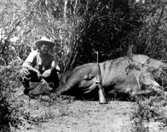 Охота на крупную дичь - это также вид спорта, в котором собирают образцы для музеев, отдыха и в качестве хобби. Резко возросшая популярность во время Викторианская эпоха, он достиг своего пика в 20 веке и включает в себя многих известных охотников на крупную дичь. Среди них есть Филип Персиваль, кто руководил Теодор Рузвельт и Эрнест Хемингуэй, сами известные охотники на крупную дичь; Брор фон Бликсен-Финеке, друг Персиваля и муж писателя Исак Динесен кто написал Из Африки; Денис Финч Хаттон, который также был персонажем книги Динесена; Майор Перси Гораций Гордон Пауэлл-Коттон; и другие. Многие охотники на крупную дичь также являются защитниками природы (примеры - Рузвельт и Хемингуэй). [11] и в настоящее время охота на крупную дичь в Африке помогает оплачивать усилия по сохранению, при этом очень большие гонорары охотники идут непосредственно в управление дикой природой. [12]