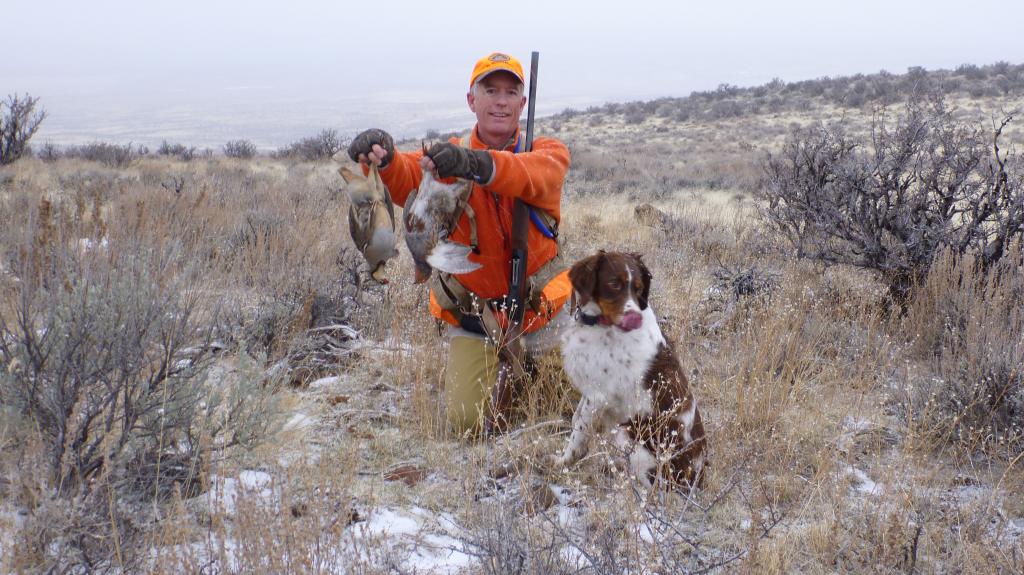 Поскольку таких западных премудростей у нас не было, то и собаку в стойке увидели в последний момент. Удалось, правда, вскинуть ружье и скомандовать «пиль!». Стая, «взорвавшись», взлетела впереди нас. Два дуплета, и еще две куропатки выбиты из стаи. Юта быстро находит птиц и без особого энтузиазма подает мне в руки.