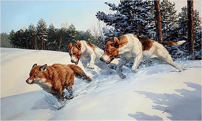 Поэтому прицельно попасть в него получается не всегда. Лисица может искать спасения в норах, что неудобно для гончей. Ее задача - загнать зверя, выгнать на охотника под выстрел. Поэтому идеально работающие собаки гонят не торопясь, и лиса часто останавливается, не делая больших кругов.