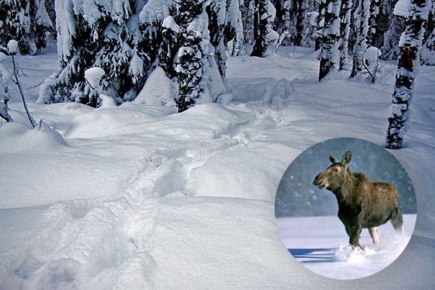 Зимой по первому снегу, когда засыпало чернотоп со множеством следовых дорожек, легко найти свежий след и определить направление движения лося.