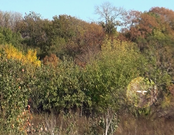 Заросли терновника на окраинах деревень - самое главное местообитание фазана, лежки зайца, кролика и пр. Так что особенно далеко никуда ходить не стоит, - фазан держится близко к человеку, так как хозяйничает на его грядках в огороде, посадках подсолнечника, овсах, кукурузе, навозных кучах, и проч. Наибольшая концентрация фазана осенью наблюдается примерно в радиусе до 1 км от поселений человека. Фото Ольга Фрунзэ, увеличивается по нажатию.