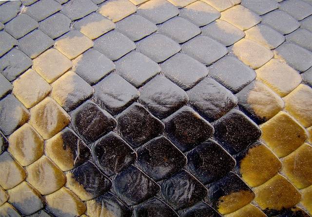 Подобно человеческим отпечаткам пальцев, узор чешуи на нижней стороне хвоста уникален у каждой особи. Этот узор, с которым анаконды рождаются, остается неизменным.