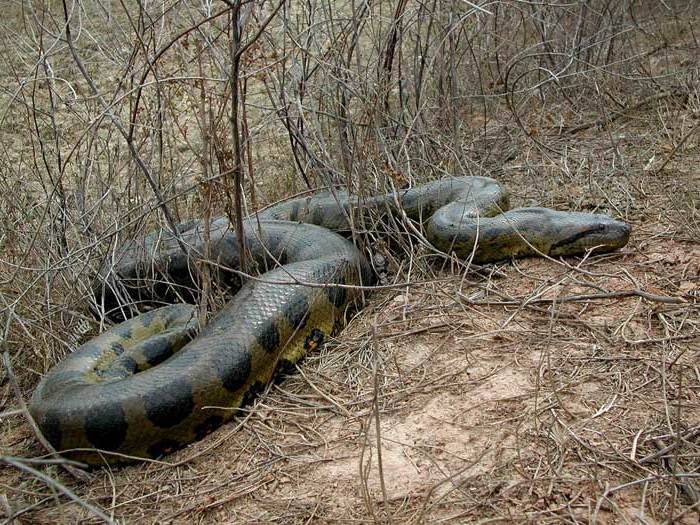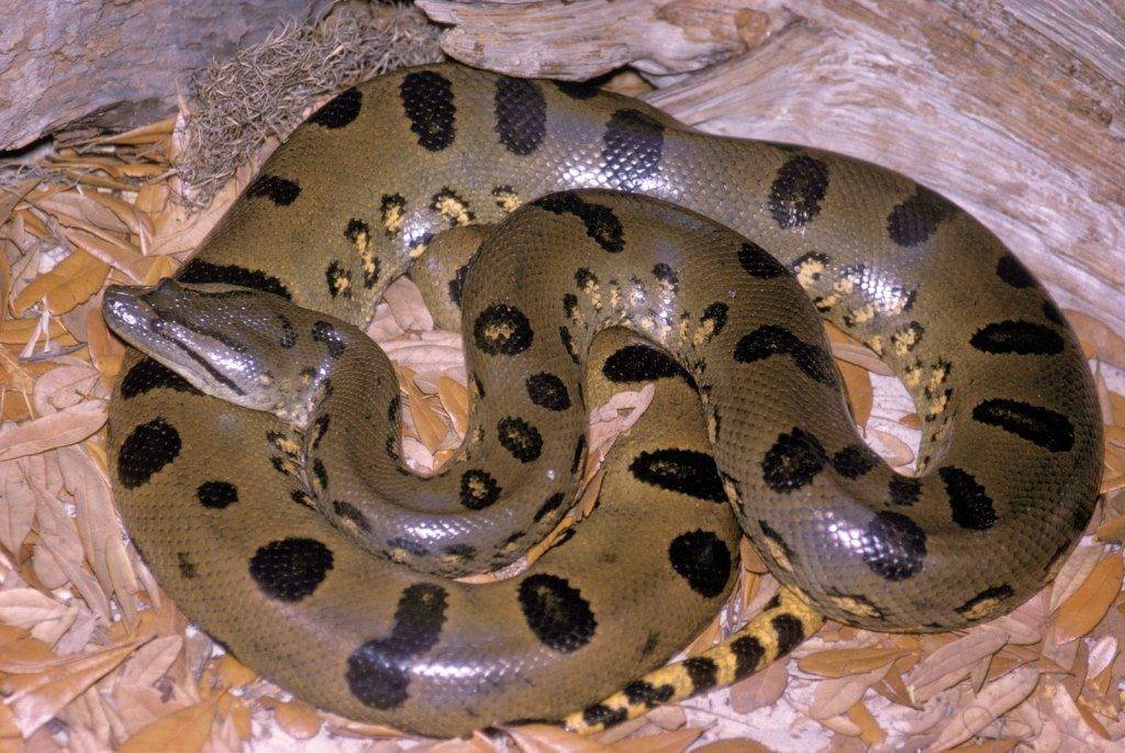 Зеленая гигантская анаконда обитает в Южной Америке. Такое название змея получила за свои размеры, колеблющиеся от 5 до 9 метров. Самая крупная анаконда имела по достоверным источникам 11,43 метров длины.