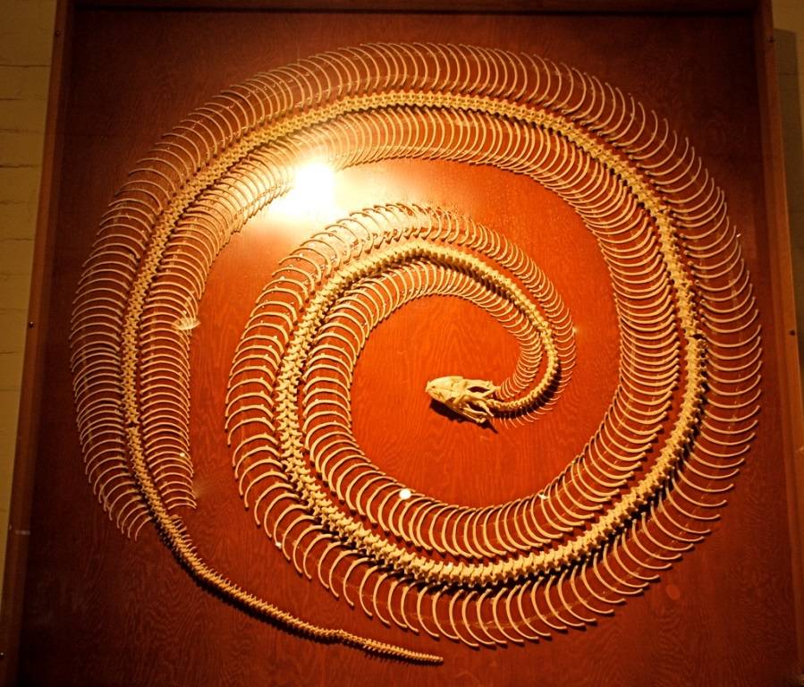 Подобно другим пресмыкающимся, эти существа имеют осевой скелет, разделённый на два отдела - туловище и хвост: они состоят из 435 позвонков. Змея имеет подвижные рёбра, которые способны широко расходиться после охоты и заглатывания крупной добычи.