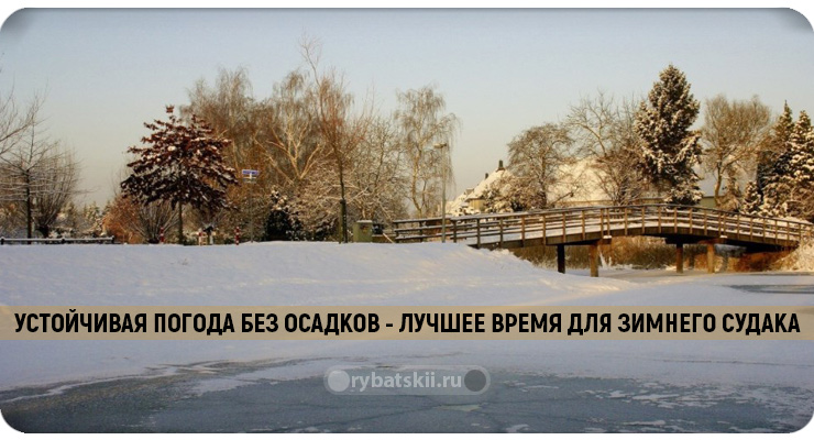 К удачной зимней рыбалке на судака располагают такие погодные состояния, как: